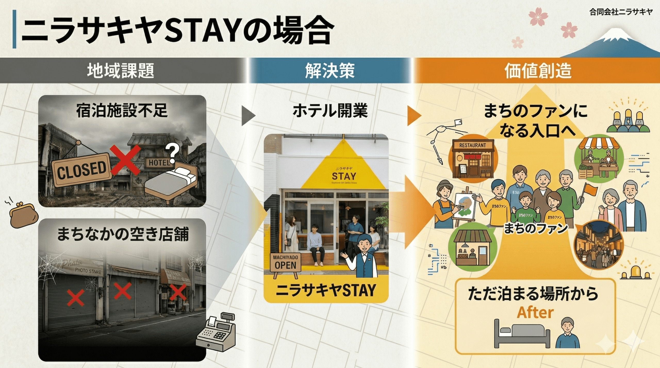 ただそんな商店街エリアにもまだ空き店舗が残っていたり、せっかくお店が増えて来たのに泊まる場所が少ないといった課題があった。