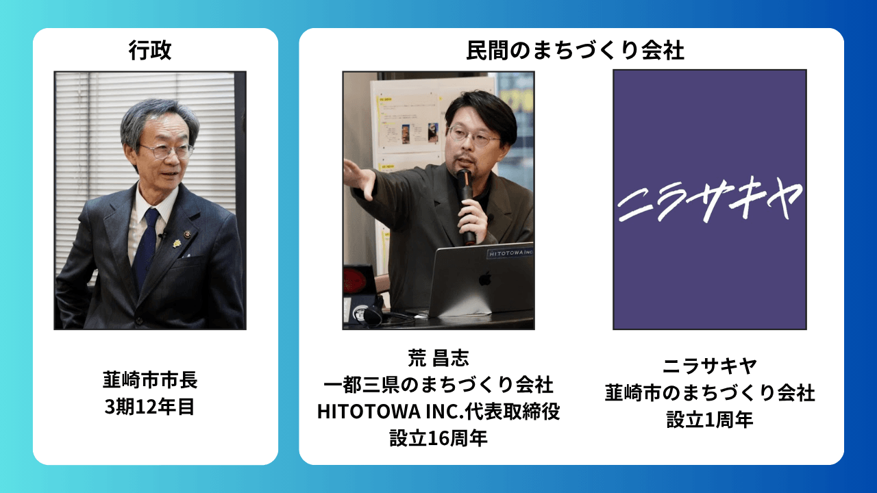イベントではまず、韮崎の経営者たちによる共同出資で立ち上がったまちづくり会社『ニラサキヤ』についての説明が行われた。